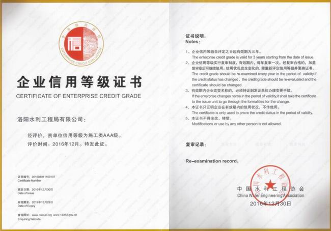 水利部AA***信用企業(yè)