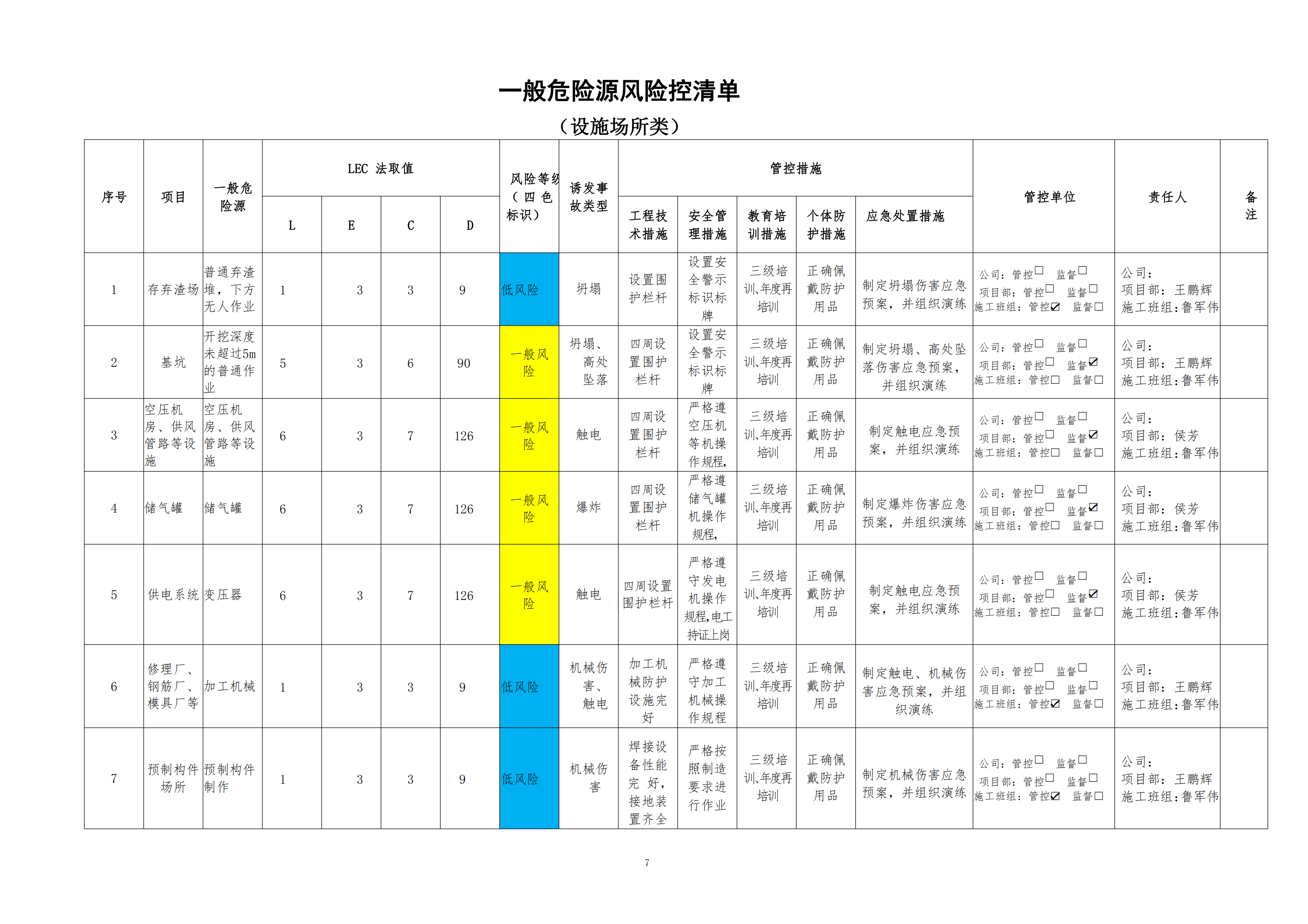 欒川縣新建水庫(kù)一期工程施工一標(biāo)段危險(xiǎn)源風(fēng)險(xiǎn)分級(jí)管控清單(10月)
