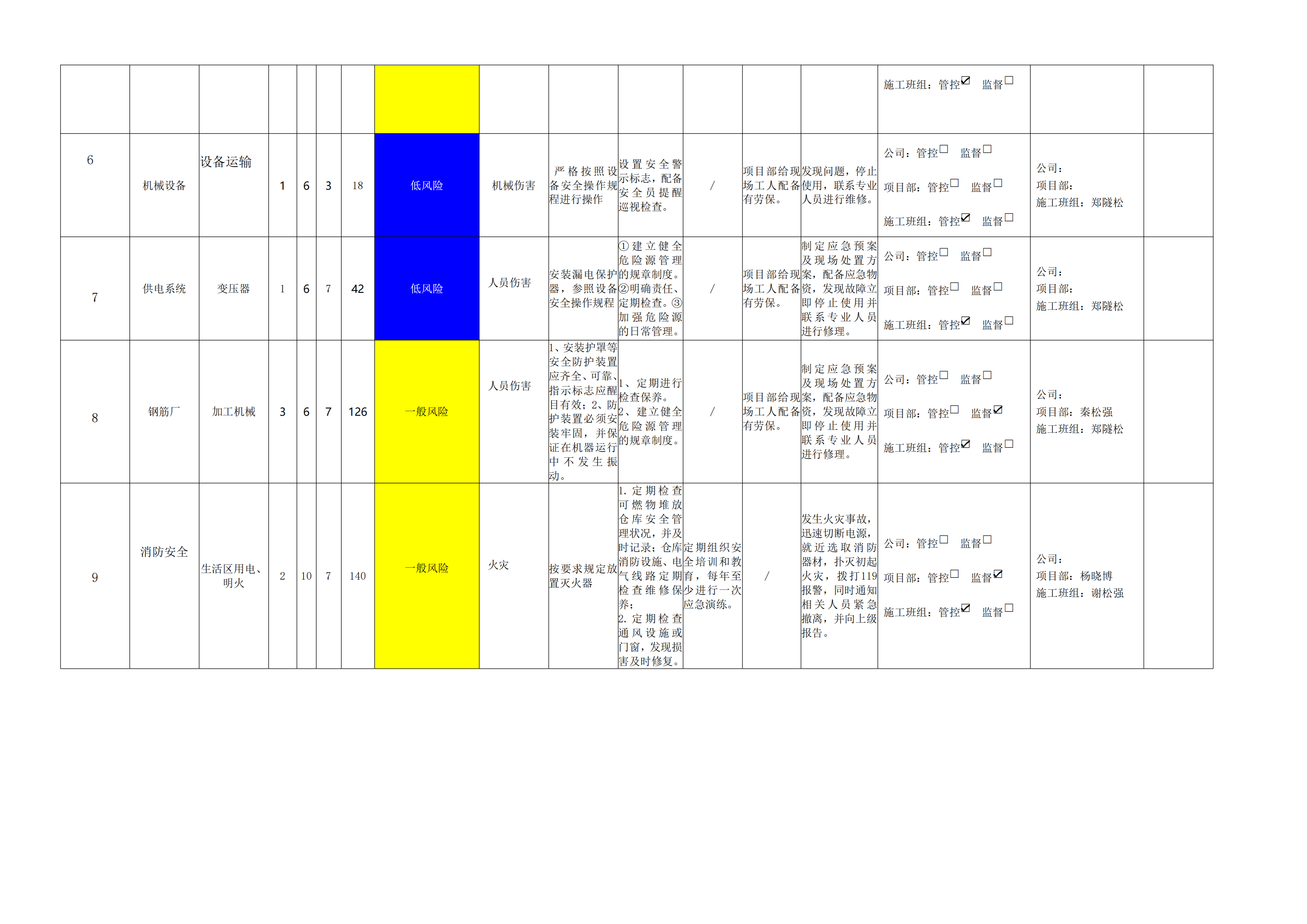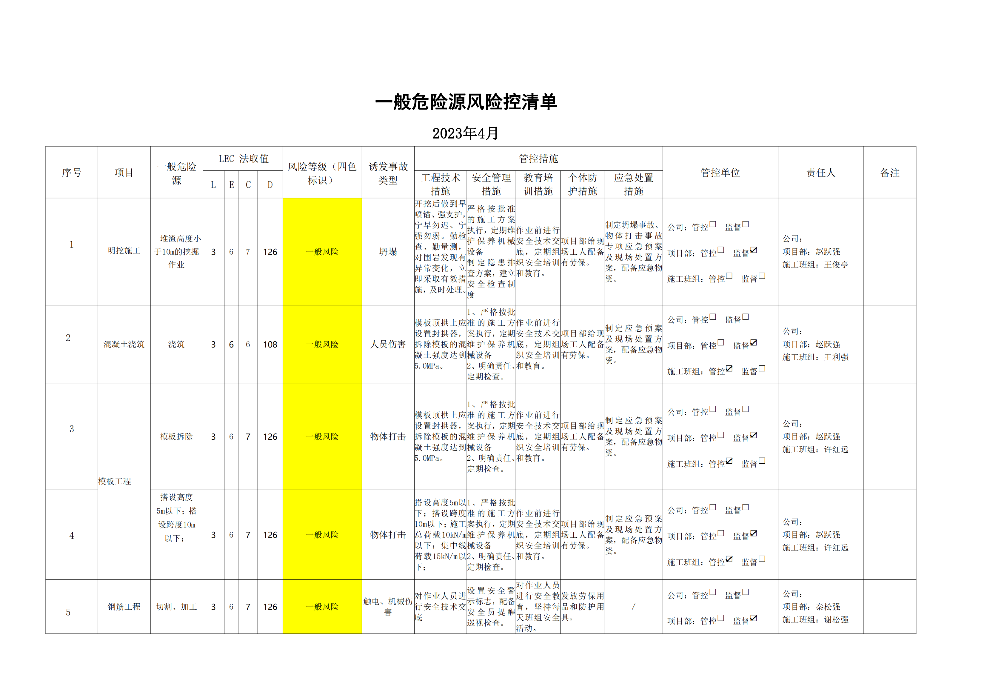 小浪底南岸灌區(qū)7標項目危險源風(fēng)險分級管控清單(4月)